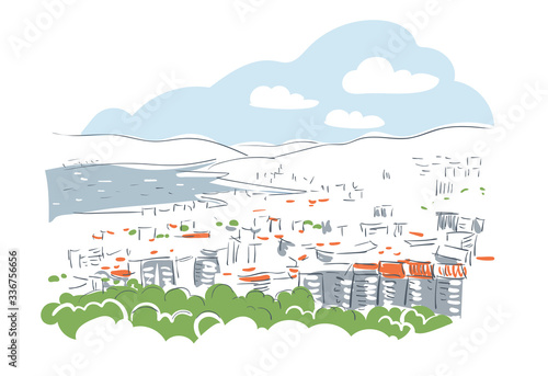 Discover new world vector website template, web page and landing page design for website and mobile site development. Paper cut hot air balloon, pyramids, other landmarks. Travel, adventure concept.