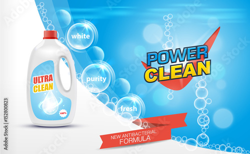 Dishwashing liquid products ad. Vector 3d illustration. Bottle template design. Dish wash brand bottle advertisement poster layout.