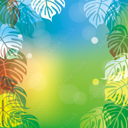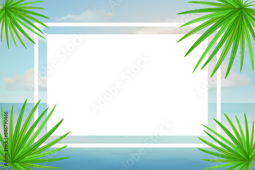 White round display podium, exotic flowers, bamboo, palm tree leaves, vector illustration. Tropical floral background for product advertising poster, banner, flyer etc.