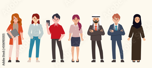 Diverse group of people concept vector illustration. Business multinational and multiracial team. Man and woman of various race in casual outfits. Community of different people.