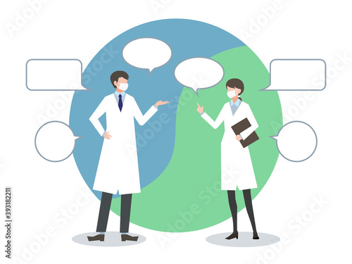 Female doctor cardiologist examining human heart with stethoscope, flat vector illustration. Cardiology, heart diseases, medicine and health care.