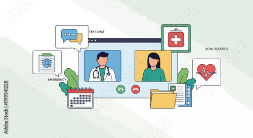 Doctor online vector. Clinic app in mobile phone for medical consultation poster. Video chat with physician illustration. Smartphone service for people disease diagnosis and treatment