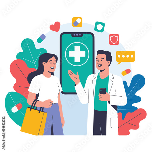 Doctor ophthalmologist eyesight check up, flat vector illustration. Ophthalmology, optometry, eye test and vision correction.