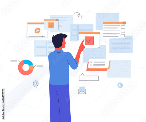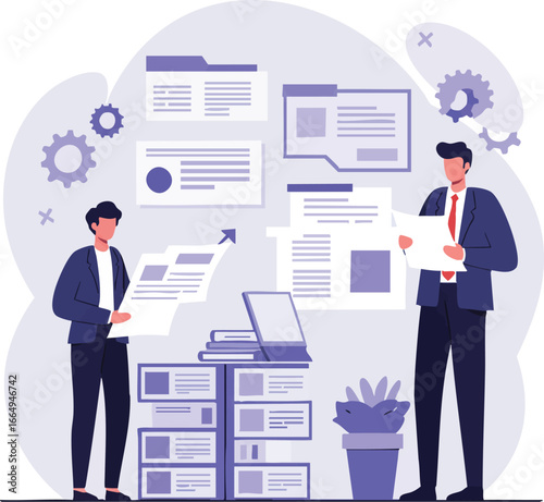 Doctor osteopath, chiropractor, male and female characters examining spine bone xray scans, flat vector illustration. Osteopathy, chiropractic. Bone health.