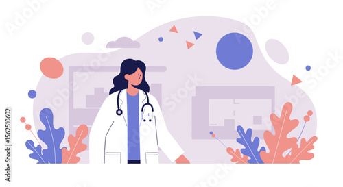 Doctor otolaryngologist cartoon character examining patient ear with otoscope, flat vector illustration. Hearing loss or deaf diagnosis. Hearing aid. Audiology.