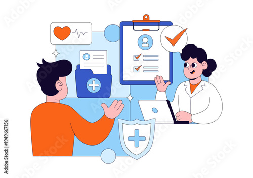 Female doctor psychologist talking to patient, flat vector illustration. Psychotherapy session, mental health, psychiatrist counseling, psychology.