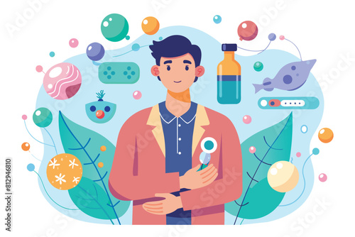 Doctor team cutting intestinal microflora vector. Flora bowel diagnosis and treatment. Microorganism detection and research. Medicine and healthcare