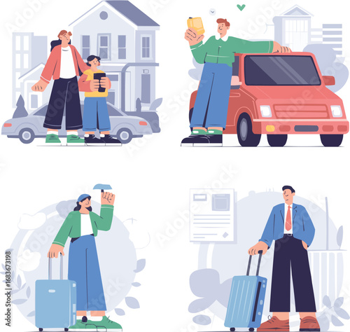 Doctor therapist, physician female examining patient male with stethoscope, flat vector illustration. Doctors appointment, consultation, examination. Medicine and health care.