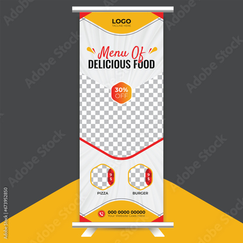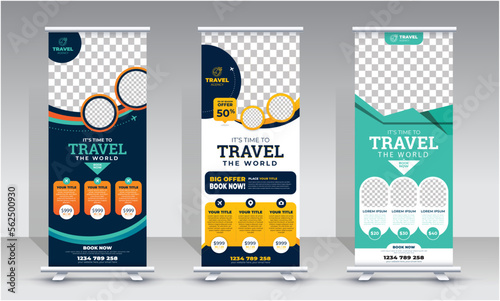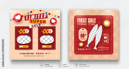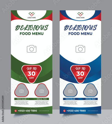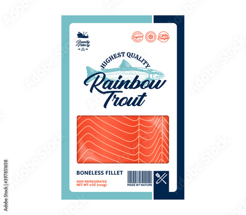 Dog food vector realistic illustration. Paper bag, doy-pack plastic bag, bowl with dry food, canned food on blue background. New premium dog food brand advertising poster.