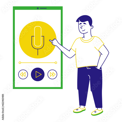 Vector illustration of circus man with trained dog jumping through hoop. Animal show in circus. Dog trainer flat style design element.