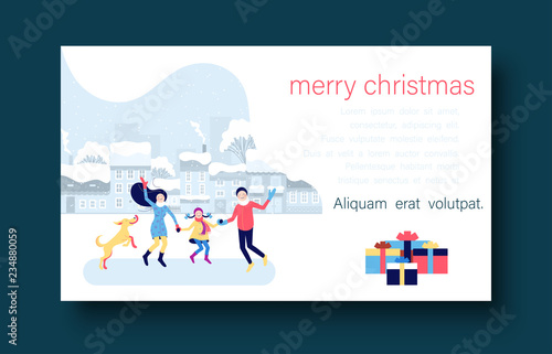 Dog walking in public park. Woman with coffee walks in a city park. Vector web site design template. Landing page website concept illustration.