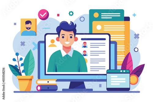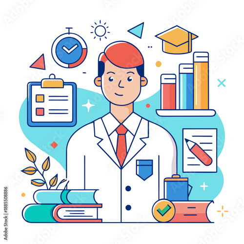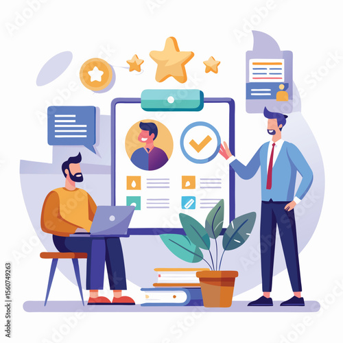 Domestic personal assistance robot brings coffee to his owner at home. Robotics technology concept vector illustration.