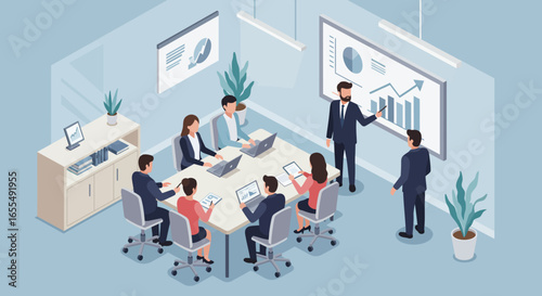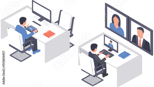 Domino effect or chain reaction in business, flat vector isometric illustration. Businessman escaping from falling dominoes. Business failure, crisis concept.