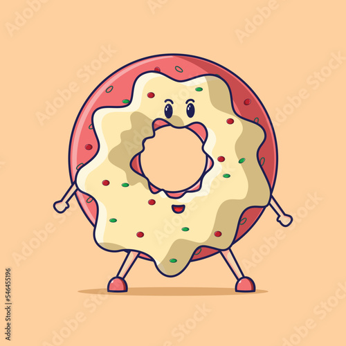 Donut character cartoon happy cute food vector. Funny doughnut with pink sugar icing glaze mascot illustration. Comic face kawaii sweet dessert isolated on white background