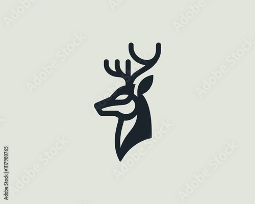 Double exposure vector layered paper cut wild deer head silhouette with winter night cityscape inside. Winter trendy composition for greeting card, poster, banner, website page etc.