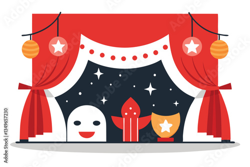 Vector illustration of episode from Dracula horror movie or theatrical performance based on novel by Bram Stoker. Flat style design element.