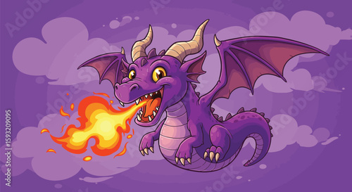 Dragon cartoon vector. Cute character illustration. Dinosaur icon. Fairy tale monster flying and blowing fire isolated on white background