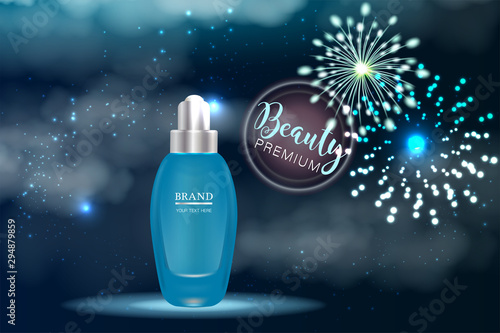 Drinking water ads vector paper cut illustration. Mineral water plastic bottle with label for your brand, water splashes and copy space.