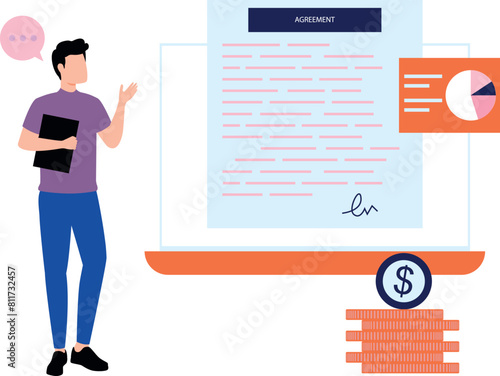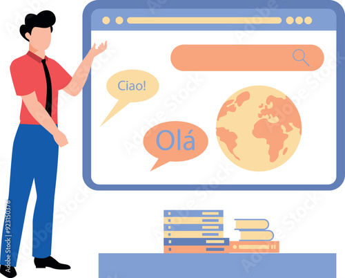 Driving school instructor explaining traffic road sign meaning at stand vector icon isolated on white background