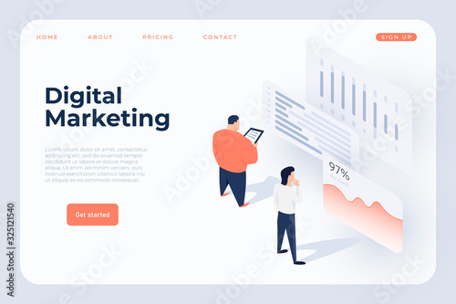Drone delivery vector website template, web page and landing page design for website and mobile site development. Isometric delivery quadcopter with parcel controlled remotely.