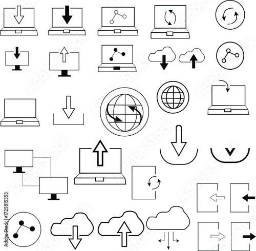 Drone quadcopter or unmanned aerial vehicle icon set. Vector flat isometric illustration isolated on white background.