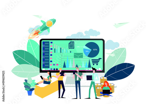 Big city and male characters launching drone, vector illustration. Unmanned aerial vehicle, drone technology concept for web banner, website page etc.