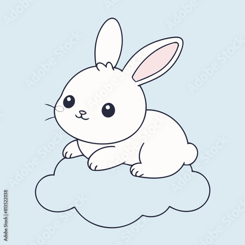 Easter bunny vector. Cute rabbit cartoon icon. Fluffy hare looking around illustration isolated on white background. Animal character for spring holiday greeting card design