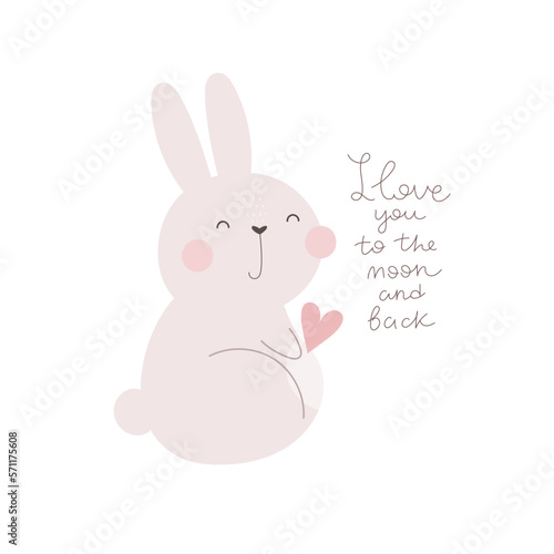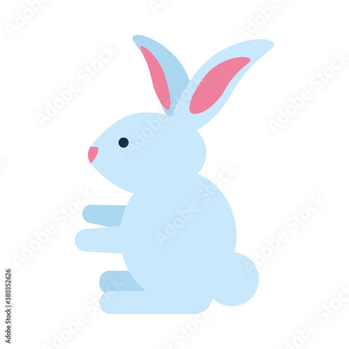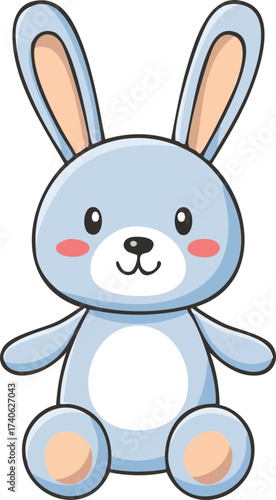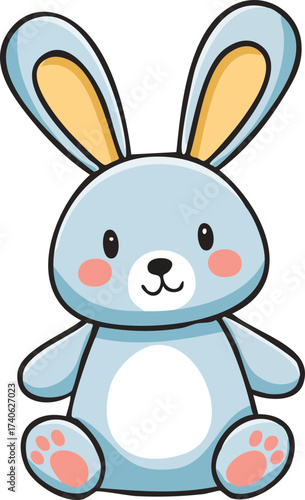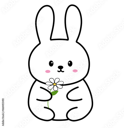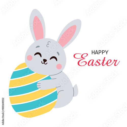 Easter bunny vector. Cute rabbit cartoon icon. Fluffy hare holding painted egg in paw illustration isolated on white background. Animal character for spring holiday greeting card design