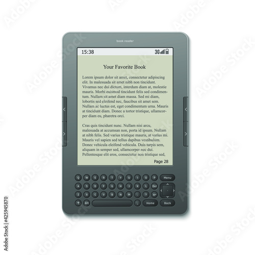 Ebook mobile tablet isolated icon. Vector electronic book reader with text on screen