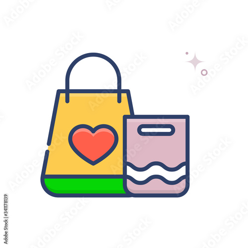 Eco bag vector icon. Fabric cotton cloth handbag with handle isolated on white background. Ecobag for shopping