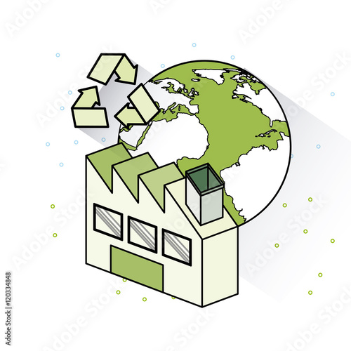 Eco city concept poster in paper art origami style. Vector illustration paper cut design. Green town with wind power turbines. Round sign
