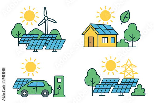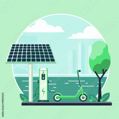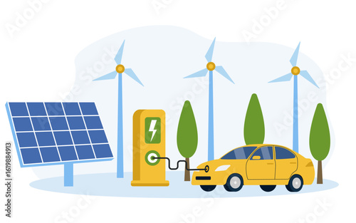 Vector flat style design illustration of planet Earth and bag with recycle symbols, light bulb connected to solar panels and battery, dollar coins. Ecology concept for web banner, website page etc.