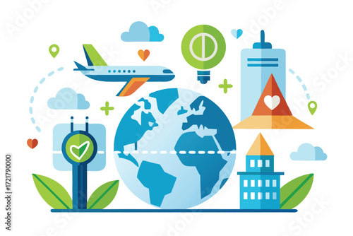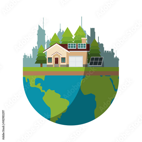 Ecology landing page template. Vector flat style design concept for environmental website and mobile site development. Wind turbines, planet Earth with recycle symbol, hand holding green sprout etc.