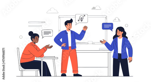 Education concept vector illustration, flat linear style design. Successful graduate with diploma is successful businessman making money.