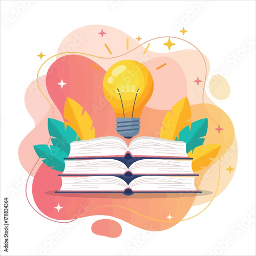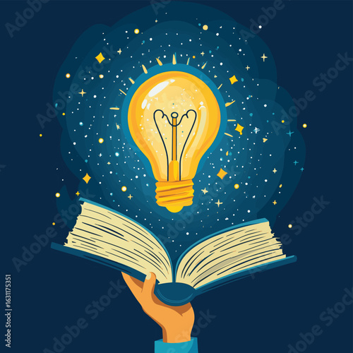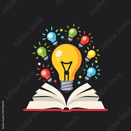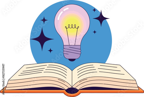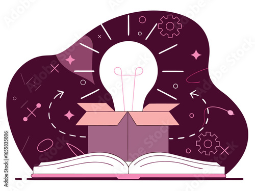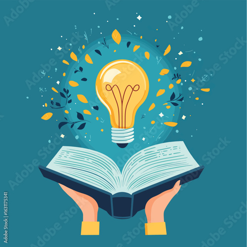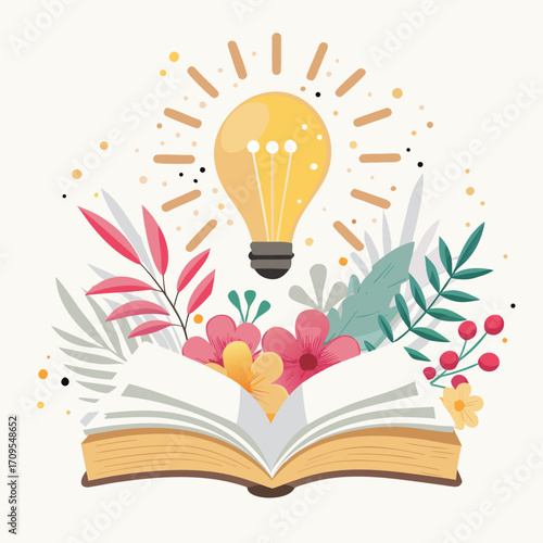 Vector layered paper cut craft style open book with innovation light bulb, dna helix, lab flask, other education and science symbols. Education and science learning concept creative composition.