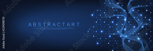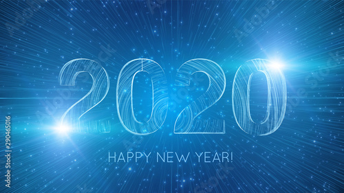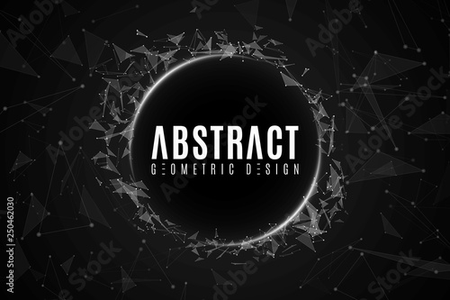 Eid al-adha or festival of sacrifice islamic holiday greeting card vector design template. Crescent moon, clouds and eid al-adha lettering. Polygonal art with scattered particles and light effects.
