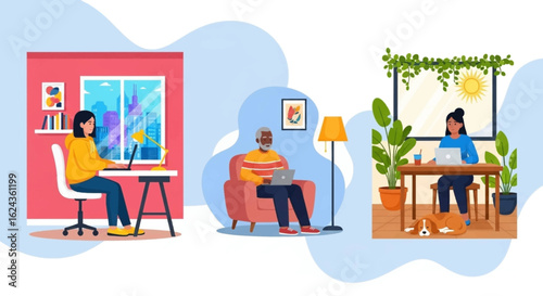 Elderly people leisure activity set, flat vector illustration. Senior men women knitting, playing checkers, watching tv, meeting with granddaughter, exercising, reading book, talking with adult son.