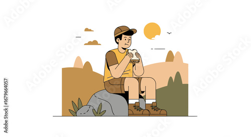 Elderly woman browsing internet using laptop sitting in bed at home vector icon isolated on white background.
