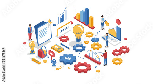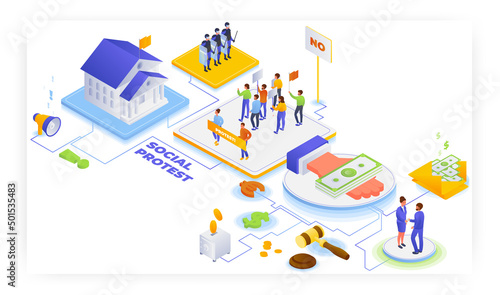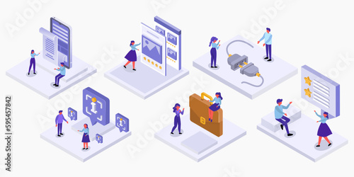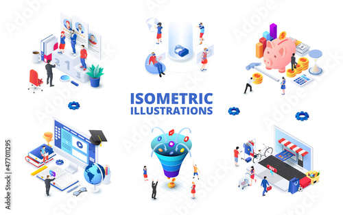 Election campaign isometric icon set, flat vector isolated illustration. Election funding, expenses. Political campaign fundraising. Voter survey. Public opinion polling.