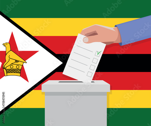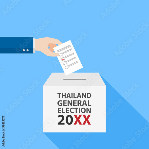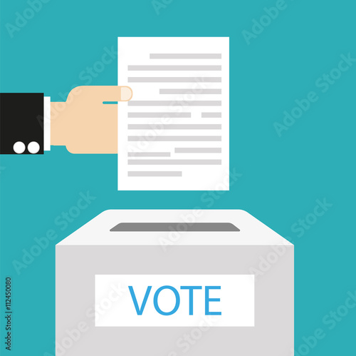 Election day concept vector illustration. Hand putting voting paper in the ballot box. Voting concept in flat style.