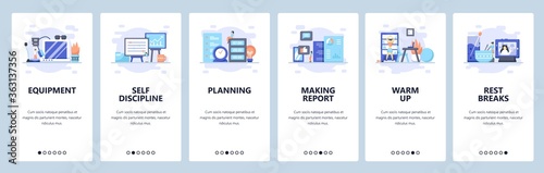 Elections and voting process. Exit poll, straw public opinion survey, voting booth, leader. Mobile app screens. Vector banner template for website and mobile development. Web site design illustration.