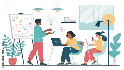 Professional handyman repairman electrician fixing ceiling lamp while standing on ladder, vector illustration. Electrician service concept for web banner, website page etc.