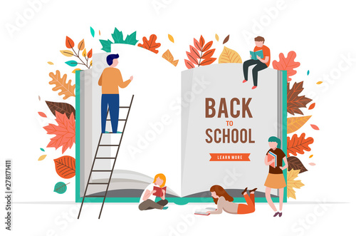 Vector illustration of smiling worker standing on ladder and fitting light bulb into a socket. Electrician flat style design element.