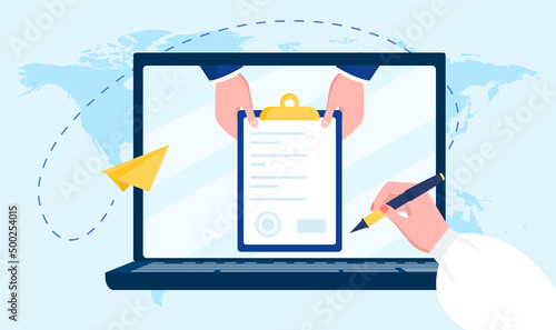 Electronic book concept vector illustration in flat style. Stack of books and e-book reader.