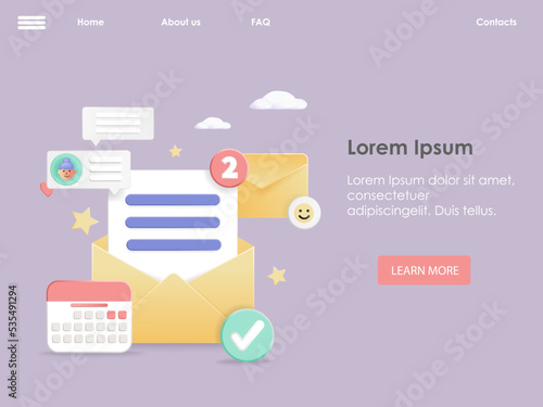 Electronic message landing page vector design. Online service for email marketing and news subscription. Global communication concept