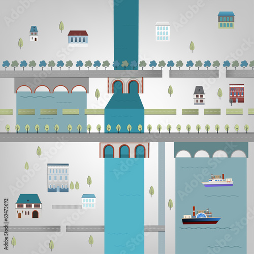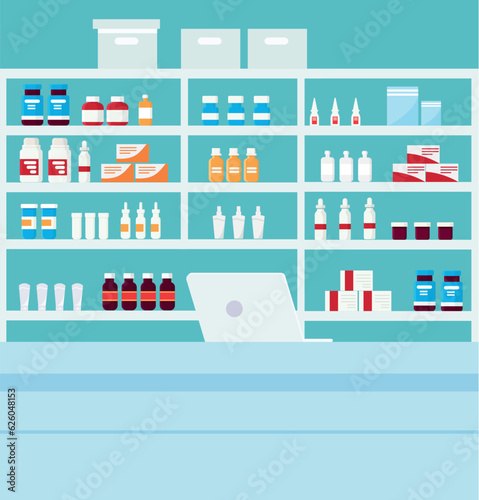 Modern electronics store interior, vector flat illustration. Fridge, washing machine, other consumer electronic products and home appliances on shelves for poster, banner etc.
