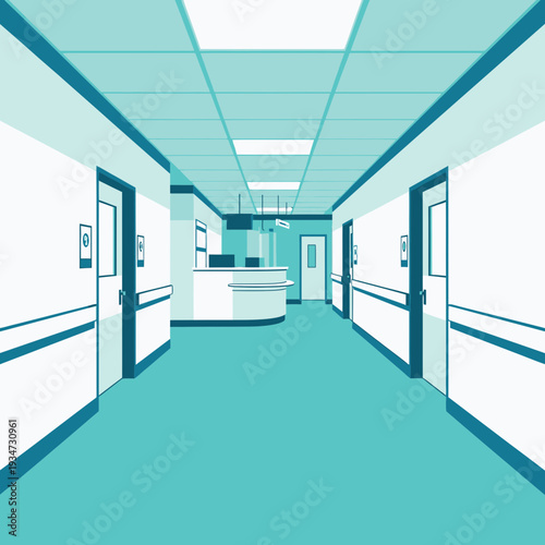 Chrome elevator hall interior realistic 3d vector. Closed lift metal gate with office door in corridor illustration. Empty building hallway scene