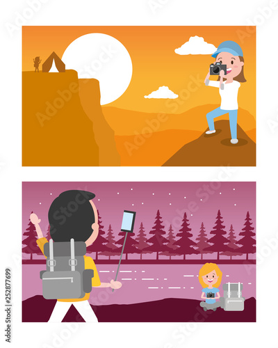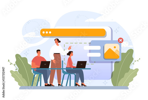 Email marketing campaign, vector illustration. Email marketing strategy composition with laptop, male and female characters sending messages for web banner, website page etc.