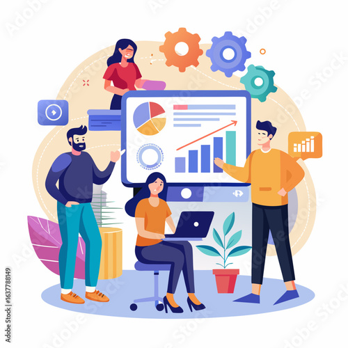 Emergency fund, vector flat illustration. Tiny people putting money into huge piggy bank. Emergency reserve of cash to cover unforeseen medical expences, home repair, car fix, job loss etc.
