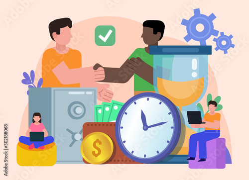 Emergency fund, vector flat illustration. Couple saving money to cover unexpected and unplanned expenses in future such as medical emergency, car and home repairs, education.